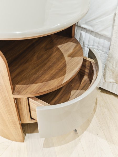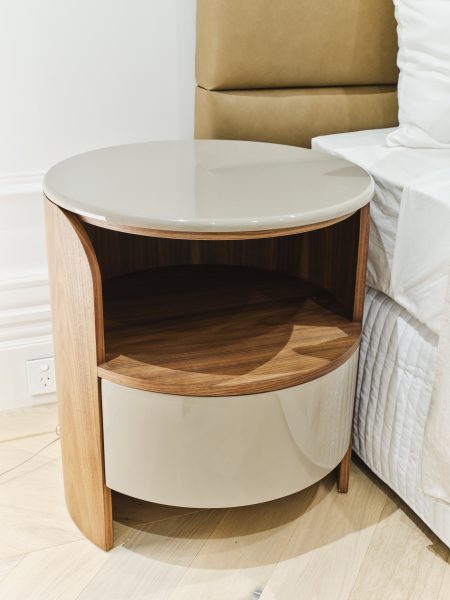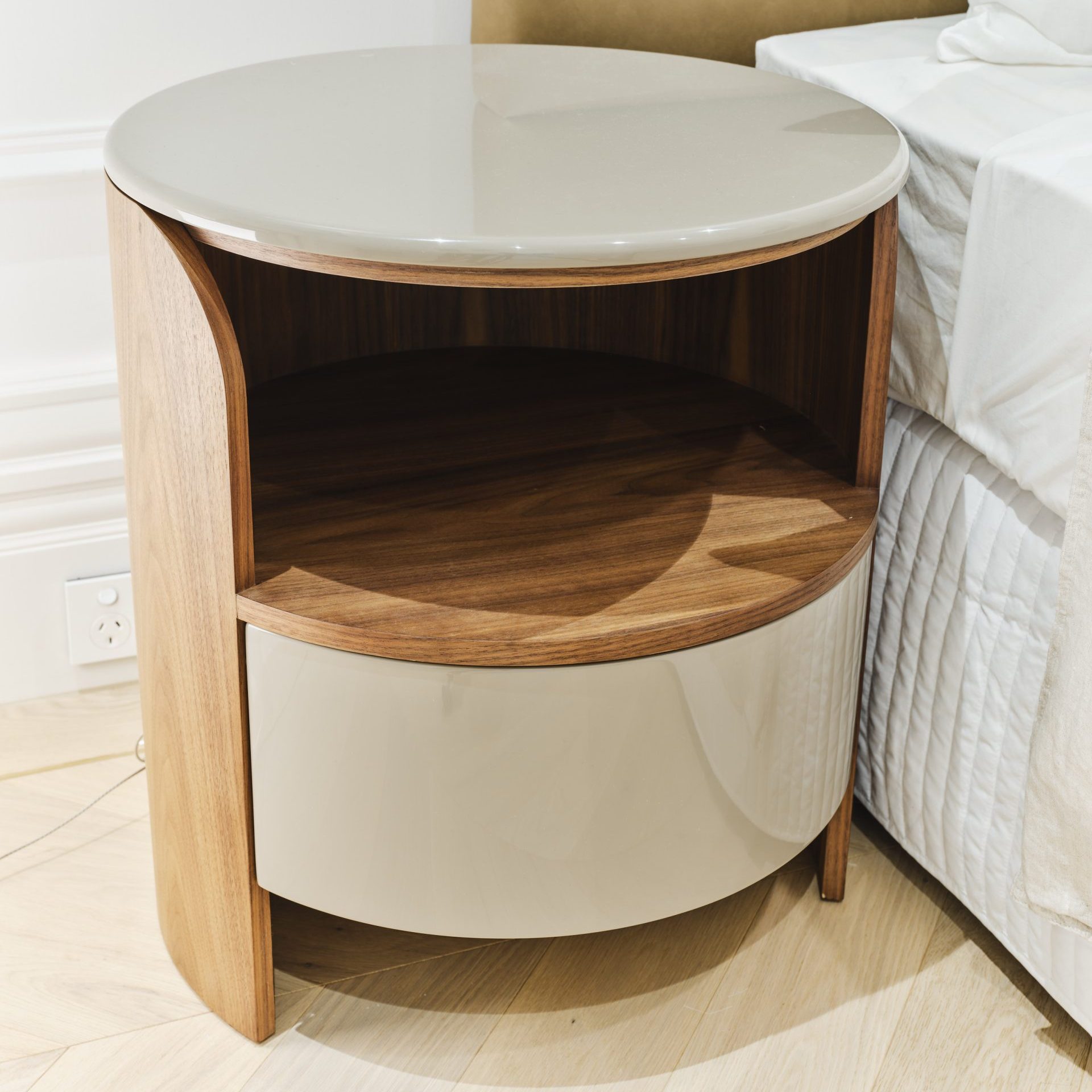 Anni Anni Bedside Table 50cm Diam x 51cm H Walnut timber cylindrical table with taupe front draw/top Categories: Bedroom, Side Table Description Description Related products Bedlinen 1034 Read more Quick View Flexi Read more Quick View Abbinabili Read more Quick View