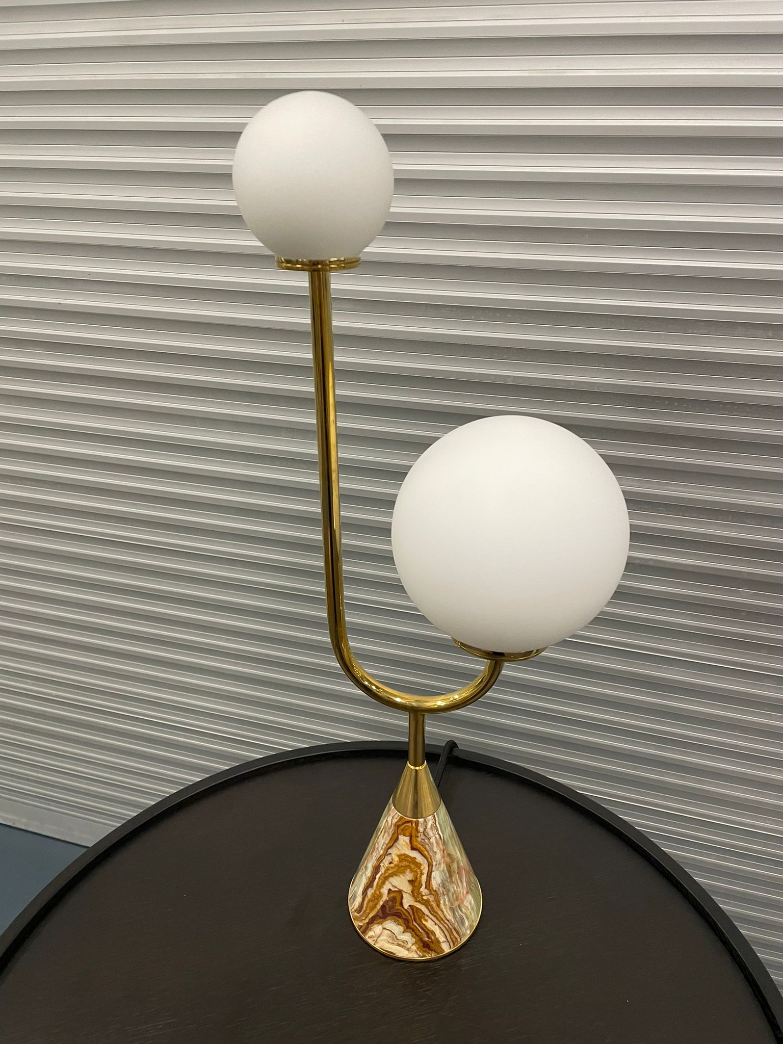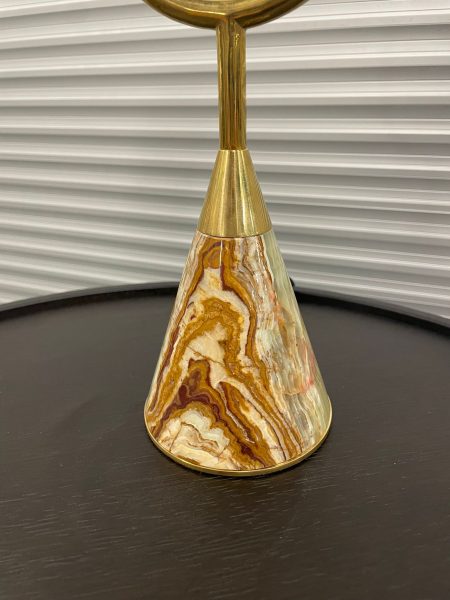 Brass u shaped stand with Beige/Green Marble base and 2 globe shade
