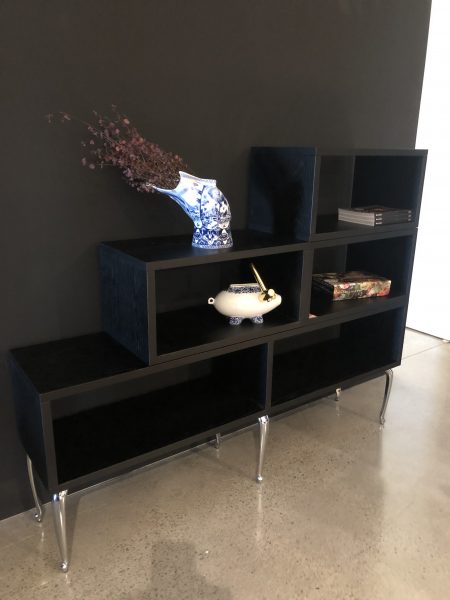 Black stained oak stackable sideboard with chromed aluminium feet