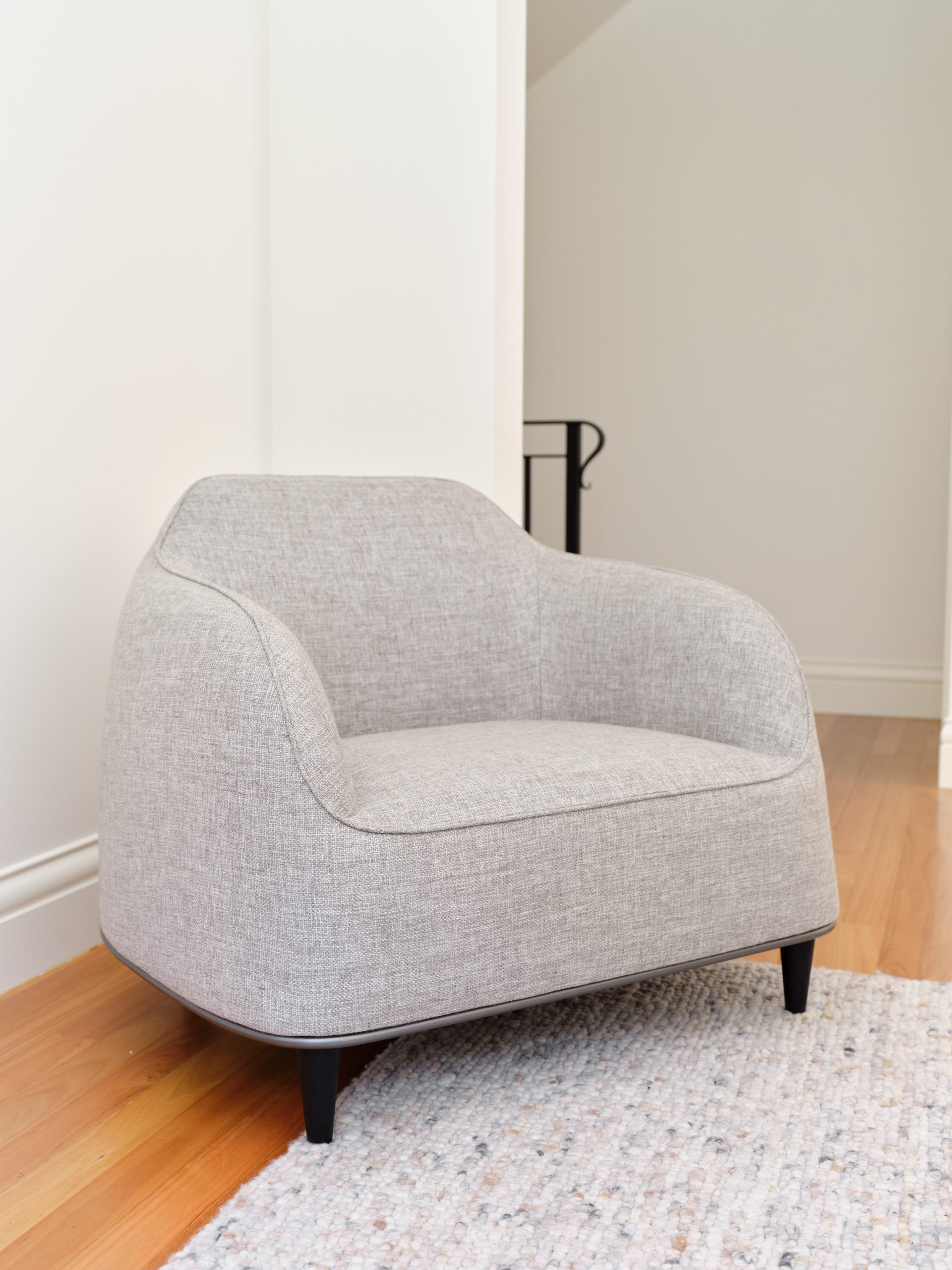 Bear Bear chair 101cm W x 91.7cm D x 71cm H grey crosshatch fabric upholstered chair on ebony timber legs Categories: Living, Occasional Chair Description Description Related products Element Read more Quick View Tiered Read more Quick View Bigger Read more Quick View