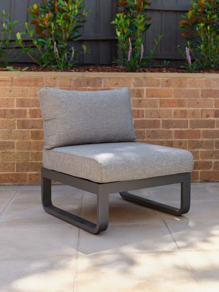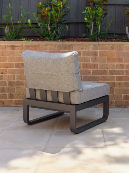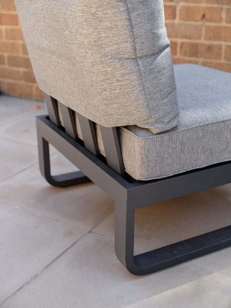 Charcoal powder coated metal frame with adjustable backs and detachable cushions