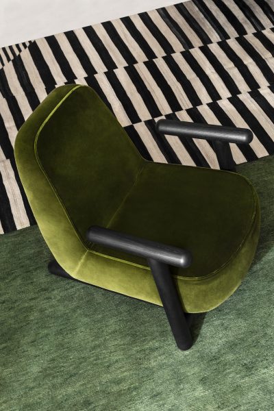 Forest Green Velvet fabric upholstered seat and back on rounded, solid timber frame
