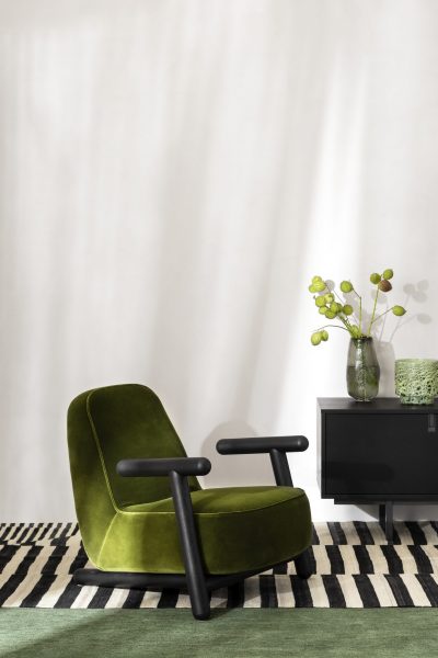 Forest Green Velvet fabric upholstered seat and back on rounded, solid timber frame