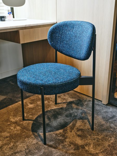 Chair 430 Chair 430 by Verpan Upholstered in petrol blue fabric Categories: Chair, Dining, Dining Chair, Office Description Description Related products Jil Read more Quick View Sketch Read more Quick View Vessel Read more Quick View