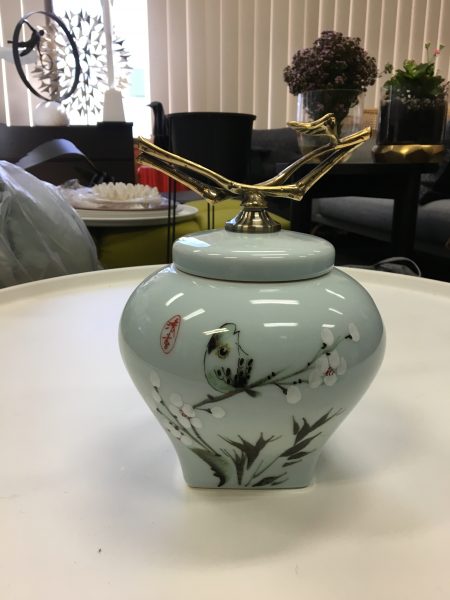 Decorative 1141 Duck egg Blue Japanese vase with gold handle Available in small and large Categories: Accessories, Decorative Description Description Height 26cms Related products Bowl 1098 Read more Quick View Bell Read more Quick View Brick Cushions – Green and Orange Read more Quick View