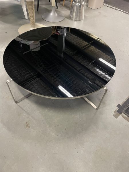 Black Glass on Silver steel frame.