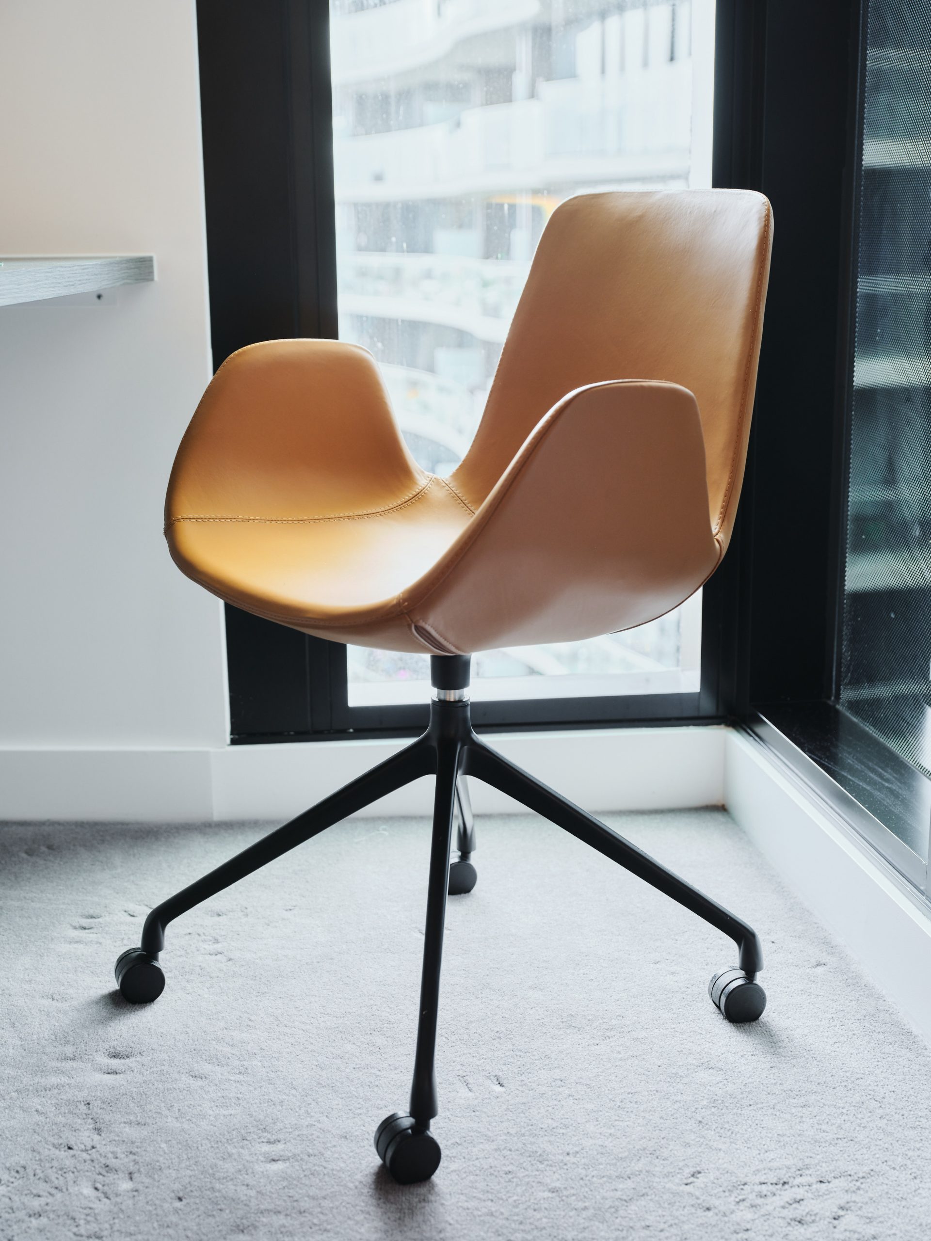 Cloud Cloud Chair by Zuster 55cm W x 52cm D x 84cm H Tan Leather on Black frame with wheels Categories: Chair, Office Description Description Related products Fab Read more Quick View Birdie Read more Quick View Pebble Read more Quick View