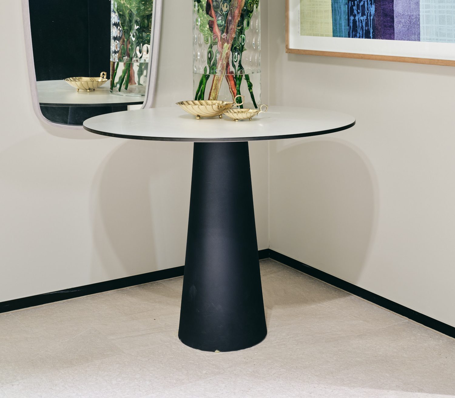 Container Container Dining Table by Moooi 90cm Diam x 71cm H Smooth white round top with black trim on black foot Categories: Dining, Dining Table Description Description Related products Myron Read more Quick View Mondrian Read more Quick View Sketch Read more Quick View