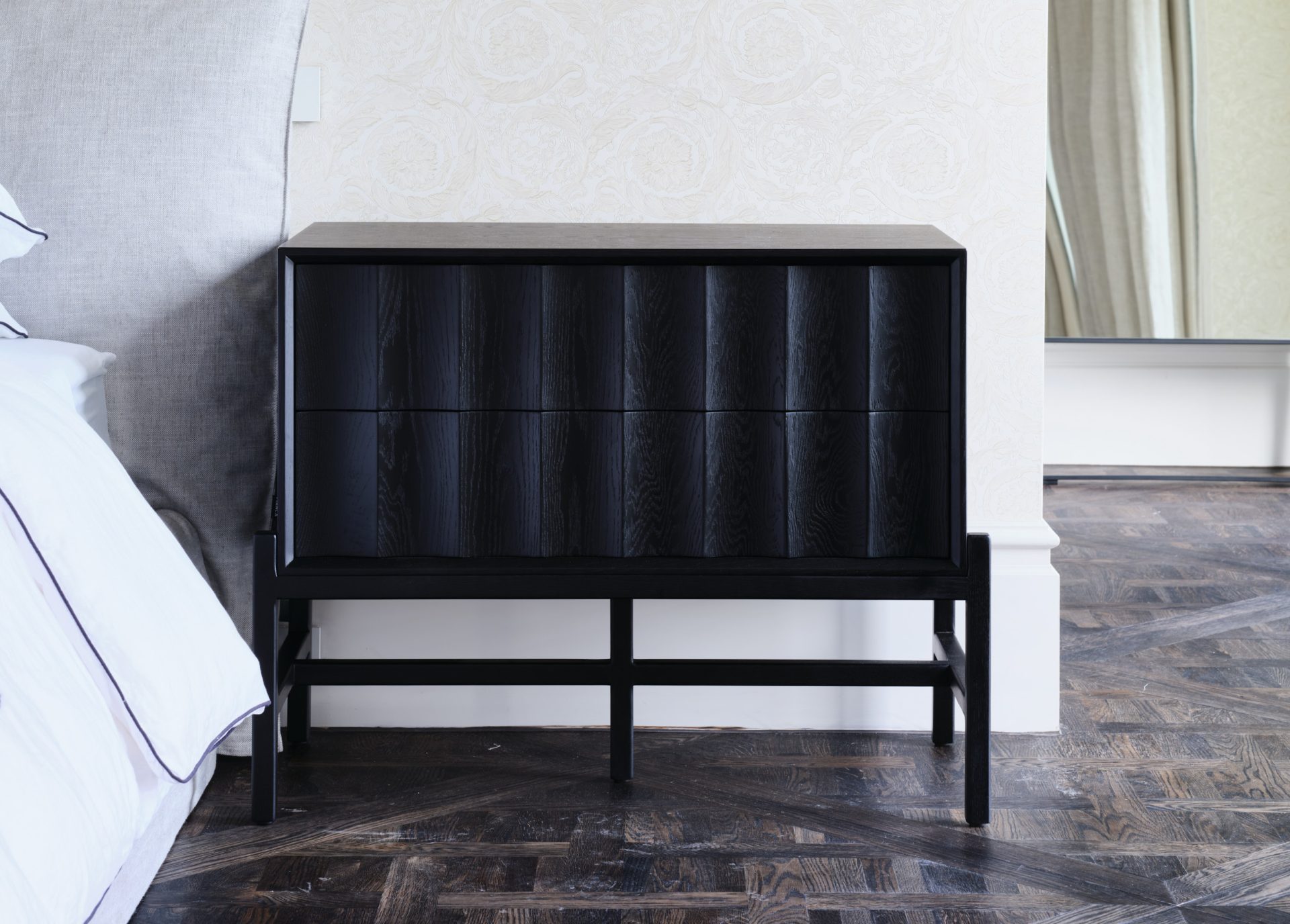 Contour Contour Side Table by Zuster 90cm W x 45cm D x 70cm H Scalloped front 2 drawer side table Categories: Bedroom, Side Table Description Description Related products Bedlinen 1011b Read more Quick View 7070 Read more Quick View Kyoto Read more Quick View