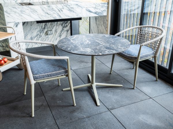 Anthracite stone porcelain round top on sage powder coated frame