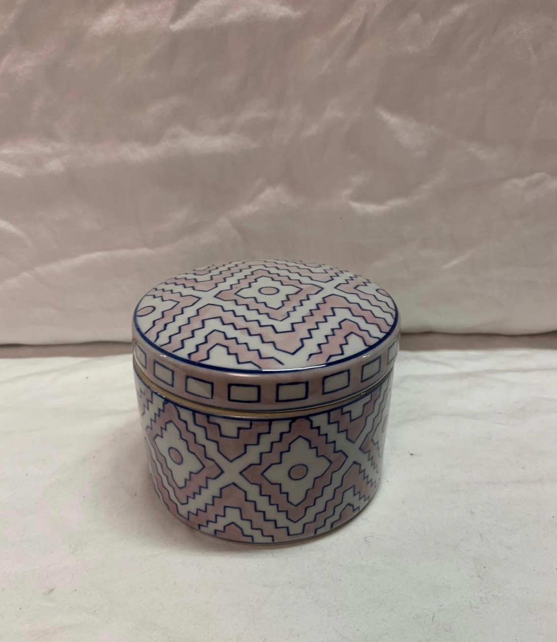 Decorative 1073 11.5cm Diam x 9cm H Patterned ceramic round jar with lid Categories: Accessories, Decorative Description Description Related products Super Curl Read more Quick View Bird Orange Cushion Read more Quick View Mia Read more Quick View