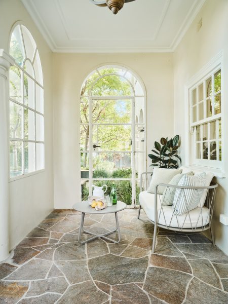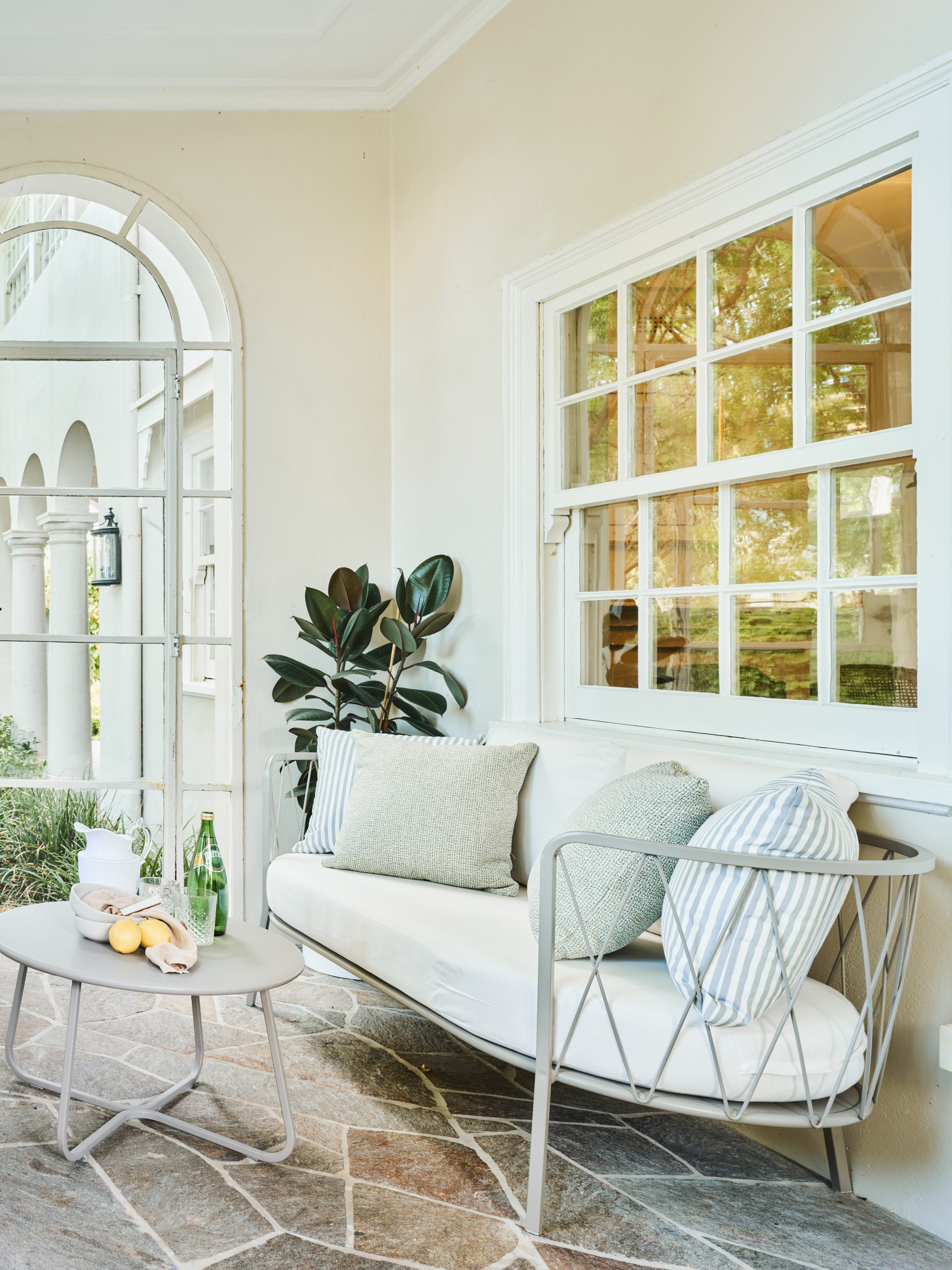 Mud Grey galvanised steel frame with diamond side detail available with removable seat and back cushions available in white or pale grey