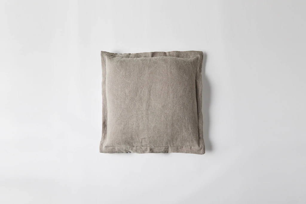 Stonewashed linen and finished with a tailored flange edge in Mushroom