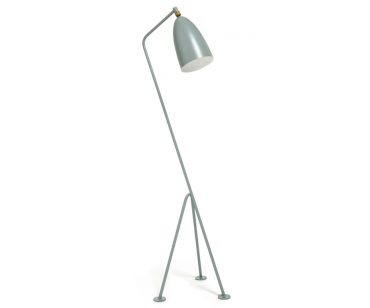 Tubular aluminium tripod stand with conical shade in charcoal.