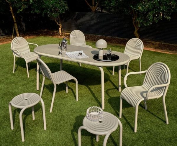 Premium durable aluminium with art deco-style raised ridges, powder-coated finish, finishing in Putty.