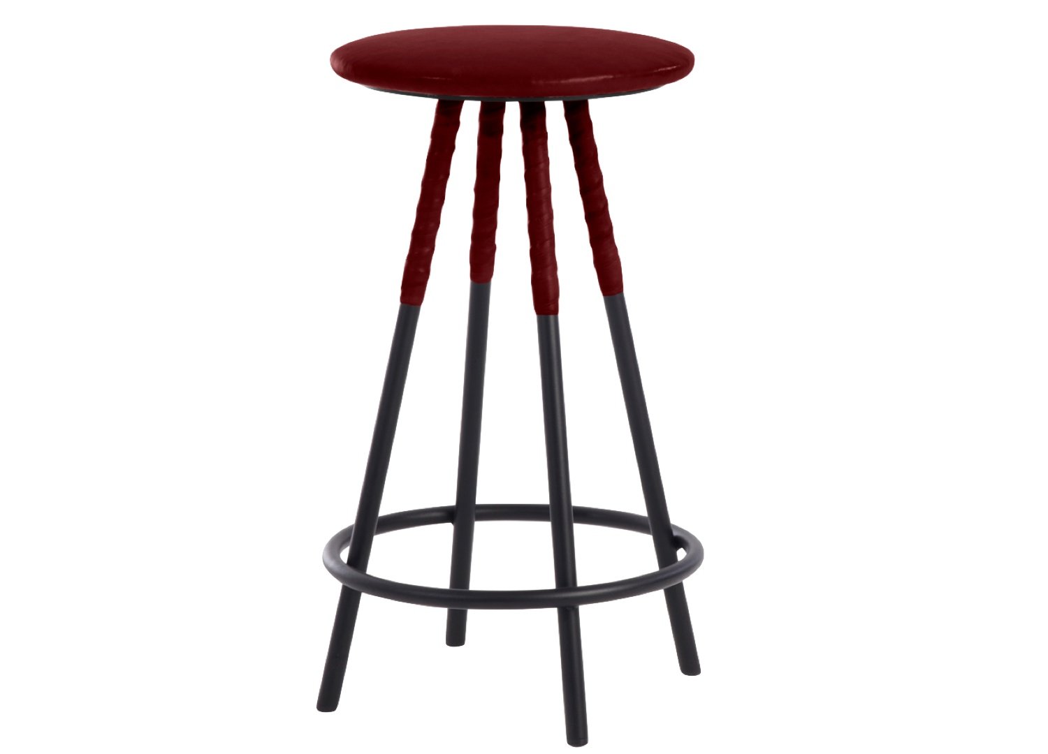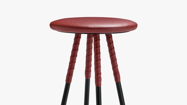 Hof Hof stool by Jonas Bohlin 68cm H Red leather upholstered seat with leather semi swaddled legs on black 4 legs Categories: Bar Stool, Dining Description Description Related products Sir Gio Read more Quick View Container Read more Quick View Jak Read more Quick View