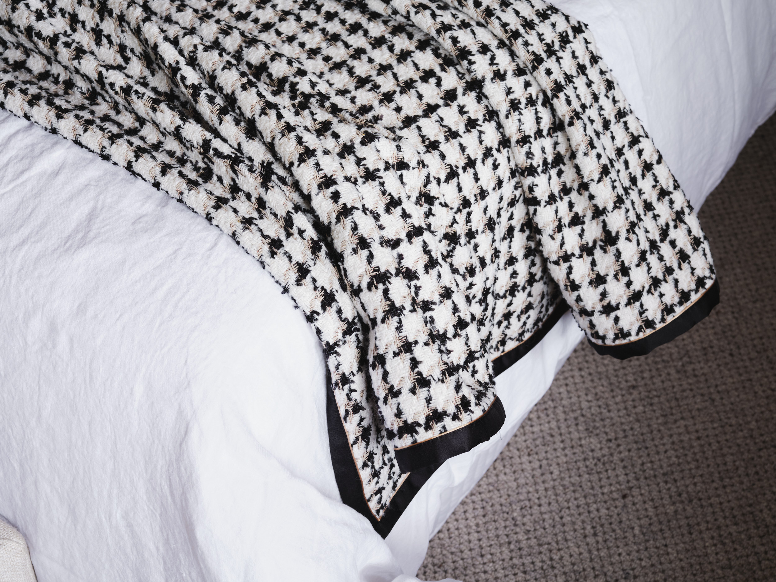 Houndstooth Houndstooth Throw Black/White/Gold Houndstooth with sateen trim Categories: Accessories, Throw Description Description Related products Super Curl Read more Quick View Vase 1663 Read more Quick View Harper Cushions – Striped Read more Quick View