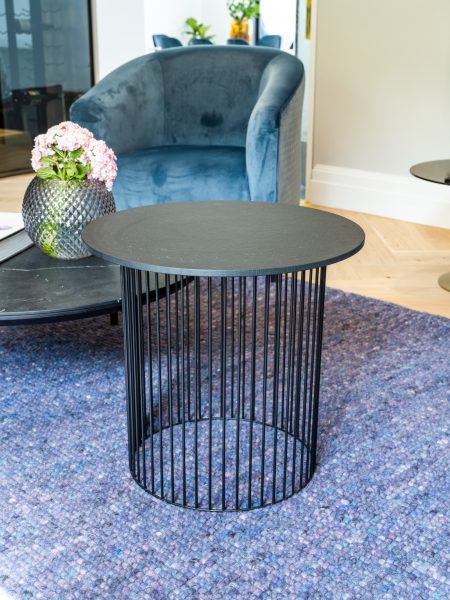 Black Smooth round top on black wire frame.