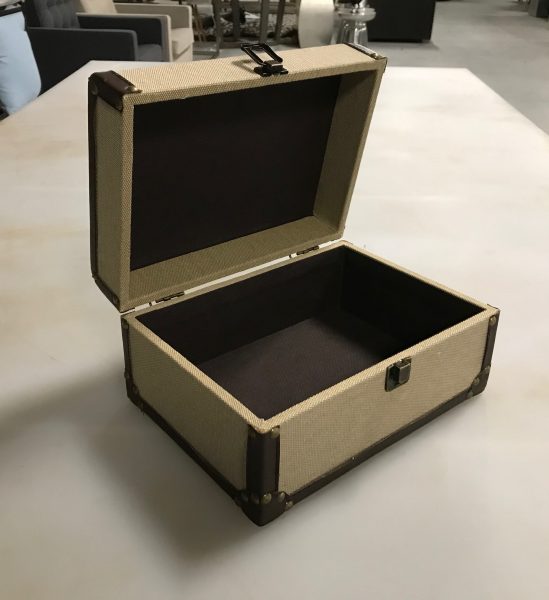 Jewellery Box 1001 Jewellery Box 27cm W x 19cm D x 14cm H Cream linen covered box with brown leather trim and stud detail Categories: Accessories, Wardrobe Description Description Related products Starr Read more Quick View Leather Read more Quick View Bowl 1098 Read more Quick View