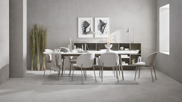 White Lacquered Top on Matt Ash Grey Base. Expandable.