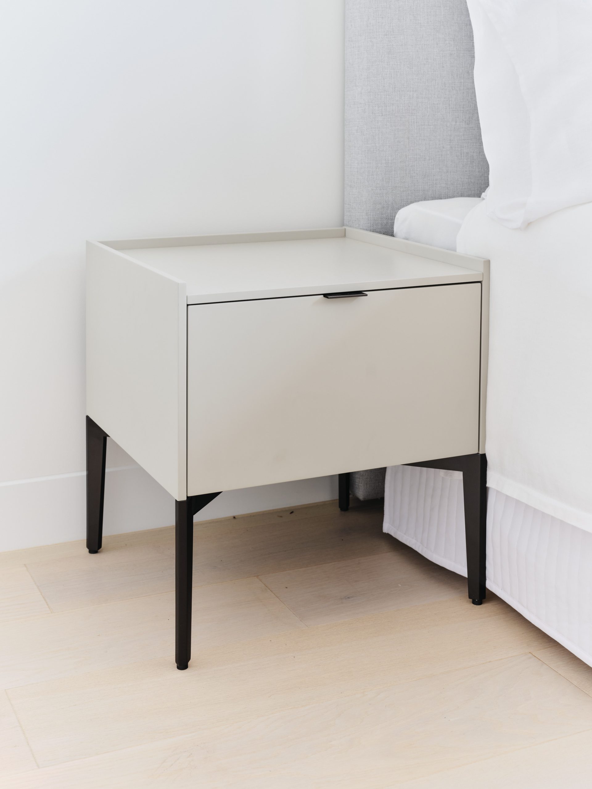Matrix Matrix bedside table 48cm W x 44cm D x 51cm H dove grey lacquered 1 drawer side table on black metal legs Categories: Bedroom, Side Table Description Description Related products Olive Read more Quick View Bedhead 1050 Read more Quick View Componibili 2 Read more Quick View