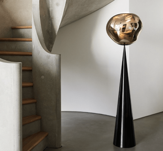 Melt Melt Floor Lamp by Tom Dixon 30cm Diam x 174.50cm H Fat cone base with gold Melt shade Categories: Floor Lamp, Lighting Description Description Related products Fork Read more Quick View Spark Read more Quick View Lumiere Read more Quick View