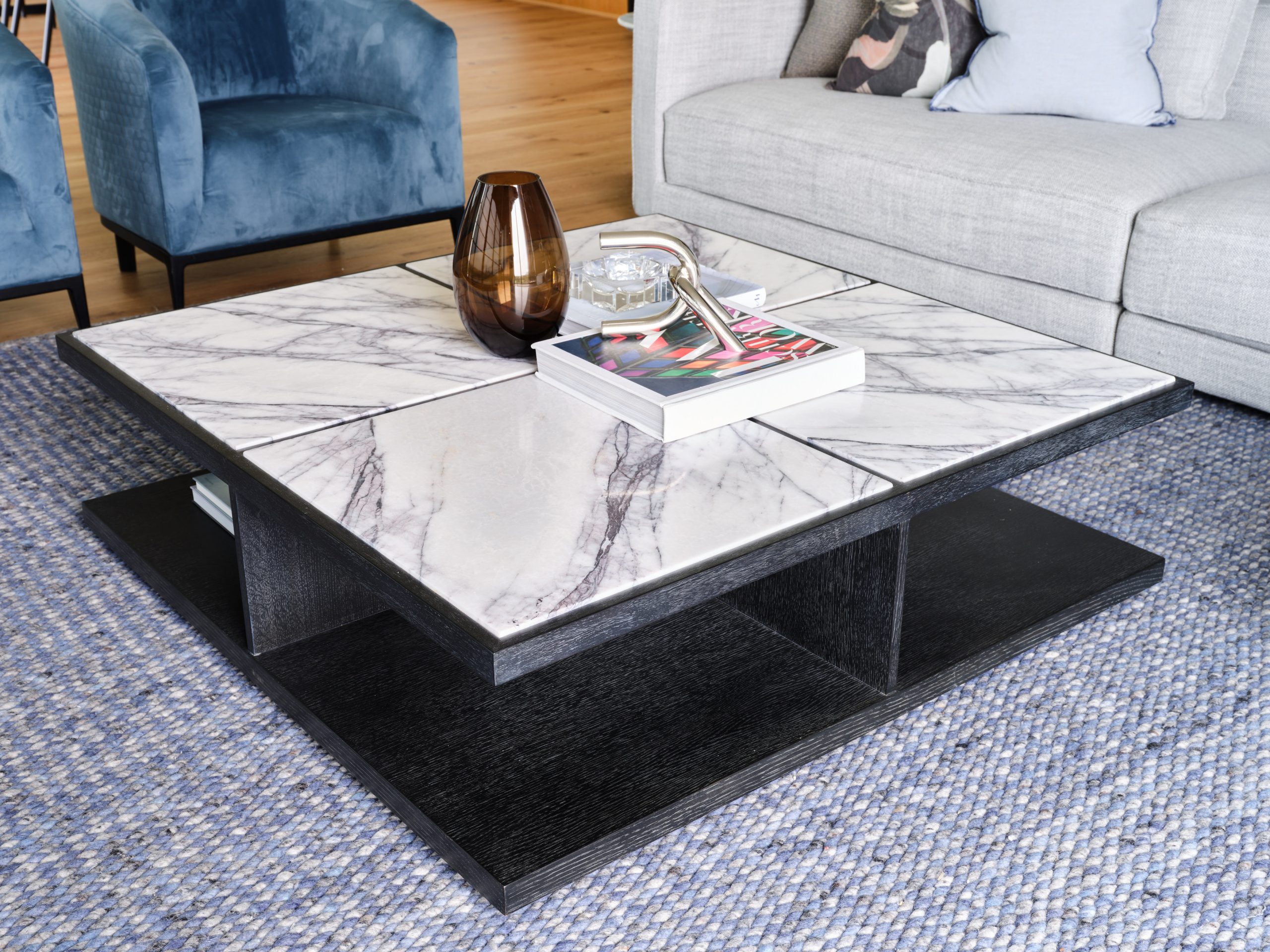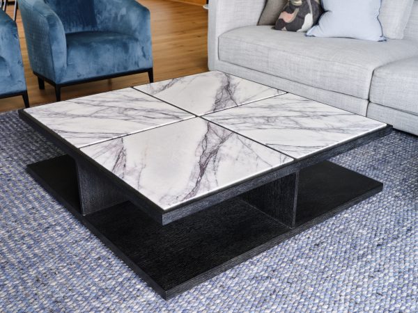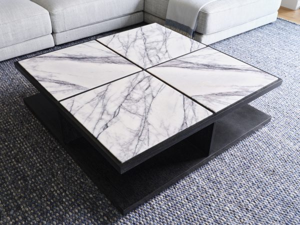 Charcoal grey oak coffee table with white/lilac marble top