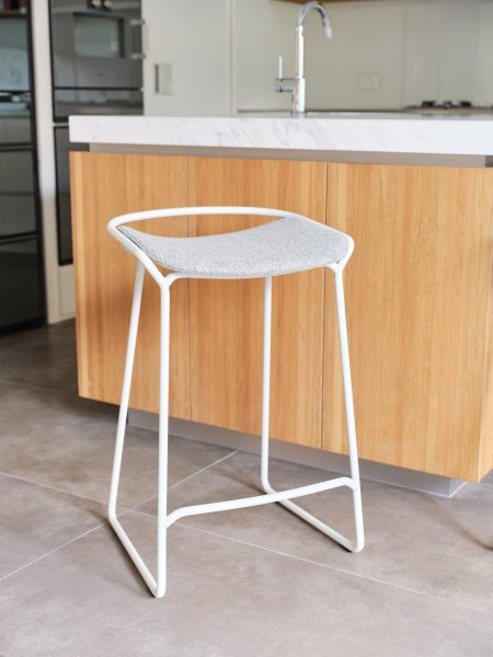 Monk Monk Stool by Prostoria 48cm W x 45cm D x 71cm H Seat Height 65cm H Grey fabric upholstered seat on white metal frame Categories: Bar Stool, Dining Description Description Related products Max Read more Quick View August Read more Quick View Single Curve Read more Quick View