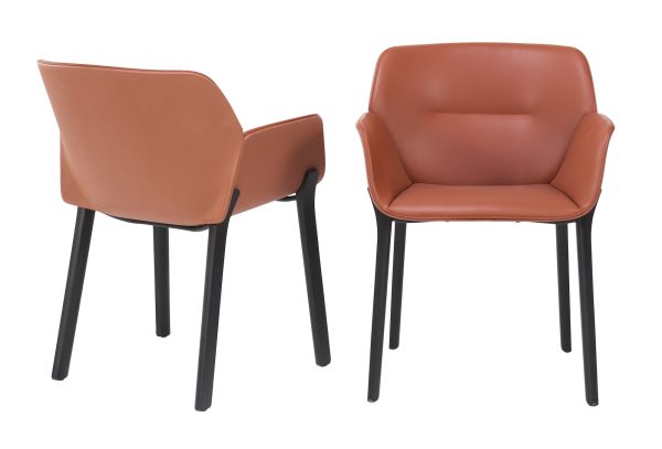 Nuez Nuez Dining Chair by Patricia Urquiola 60cm W x 60cm D x 81cm H Orange leather seat on black timber legs Categories: Dining, Dining Chair Description Description Related products Oslo Read more Quick View Max Read more Quick View Sketch Read more Quick View