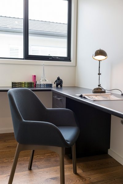 Graphite upholstered seat on black Polyurethane taupe legs