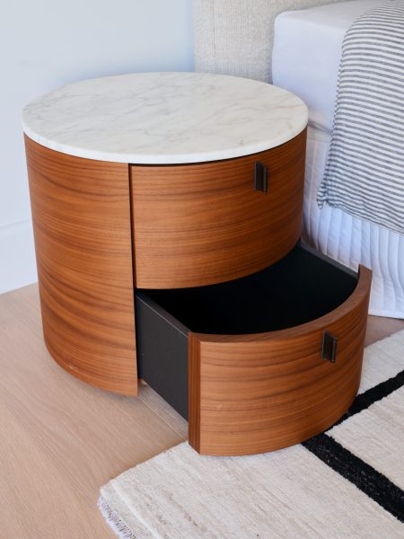 Onda Onda Bedside table by Poliform 48.5cm Diam x 45cm H Walnut 2 drawer cylindrical base with calacatta oro top Categories: Bedroom, Side Table Description Description Related products Bedhead 1047 Read more Quick View Bedhead 1050 Read more Quick View PianPian Read more Quick View