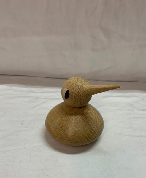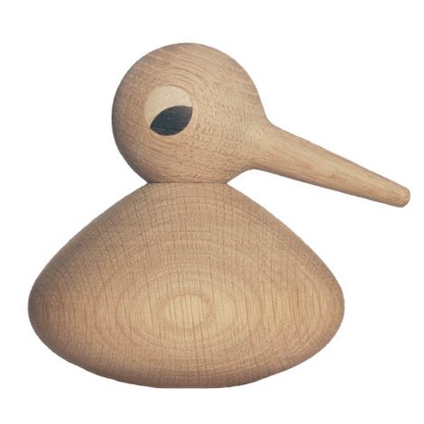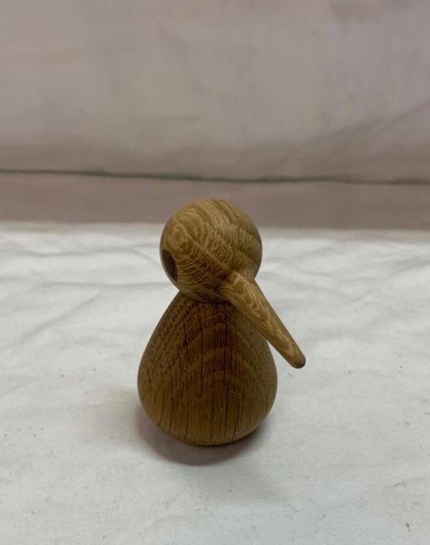 Timber round bird with spherical head and long beak