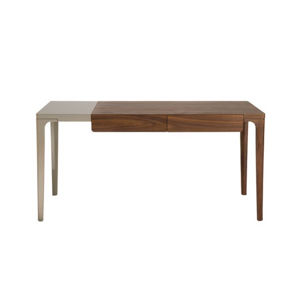 Walnut frame and top with lacquered grey front on slim walnut legs