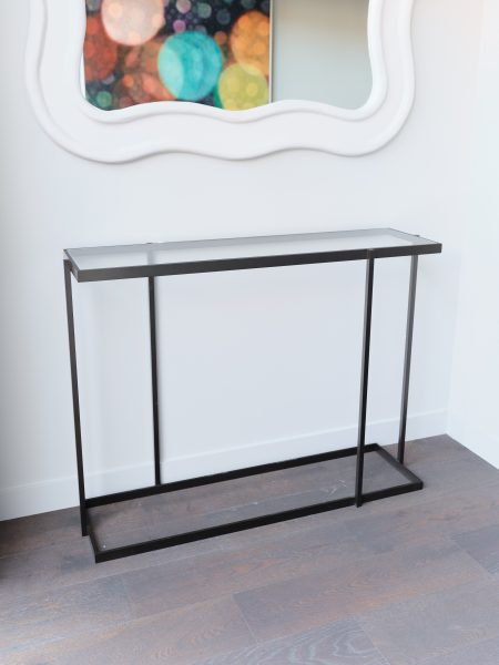 Rio Rio Console by Duvivier 113cm L x 33cm D x 85cm H Clear glass shelves on bronze powder coated frame Categories: Console, Living Description Description Related products Tiered Read more Quick View Indigo Read more Quick View Element Read more Quick View