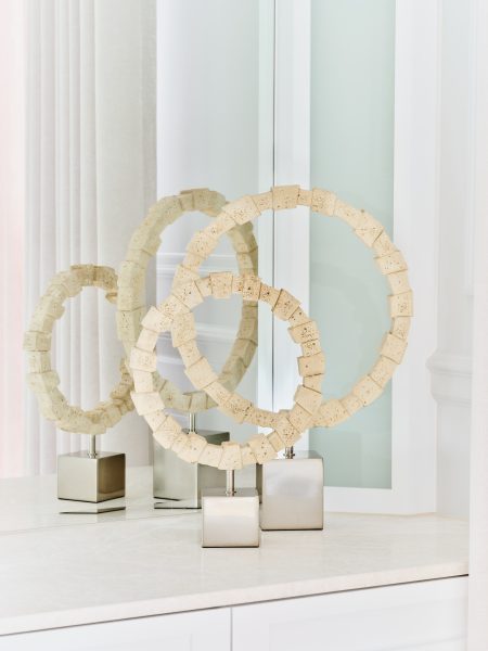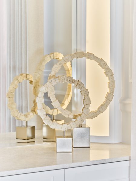 SCU1212 Pair of Faux Ivory stone rings on nickel blocks Large 43.2cm W x 58.5cm H Categories: Accessories, Sculpture Description Description Related products Dot Dot Dot Cushion – Pink Read more Quick View Exotic Cushion – Brown Read more Quick View Basket 1009 Read more Quick View