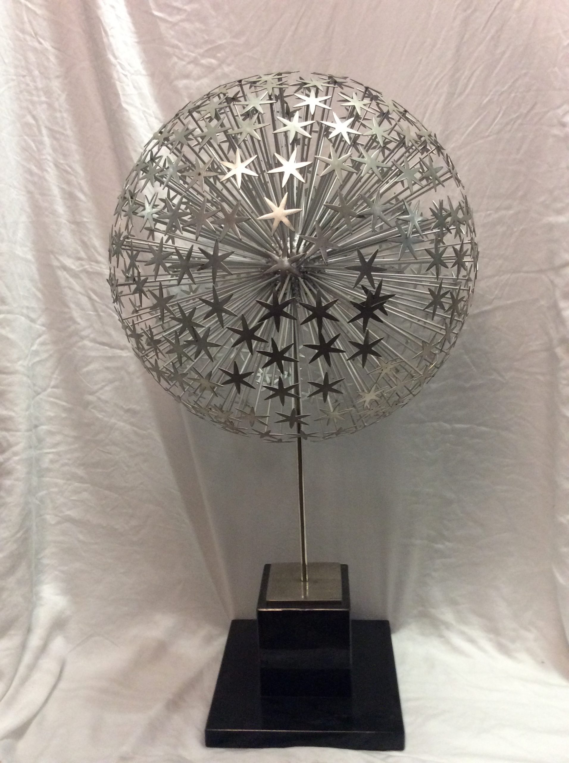 Sculpture 1028 Ball of stars on slim metal stand. Available in 2 sizes: 30cm Diam x 46cm H 40cm Diam x 103cm H Categories: Accessories, Sculpture Description Description Related products Ace Ottoman – Leather- Black Read more Quick View Basket 1009 Read more Quick View Basket 1025 Read more Quick View