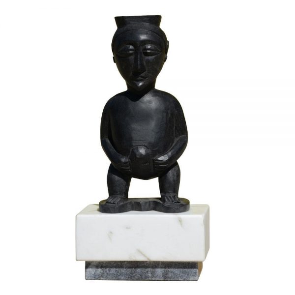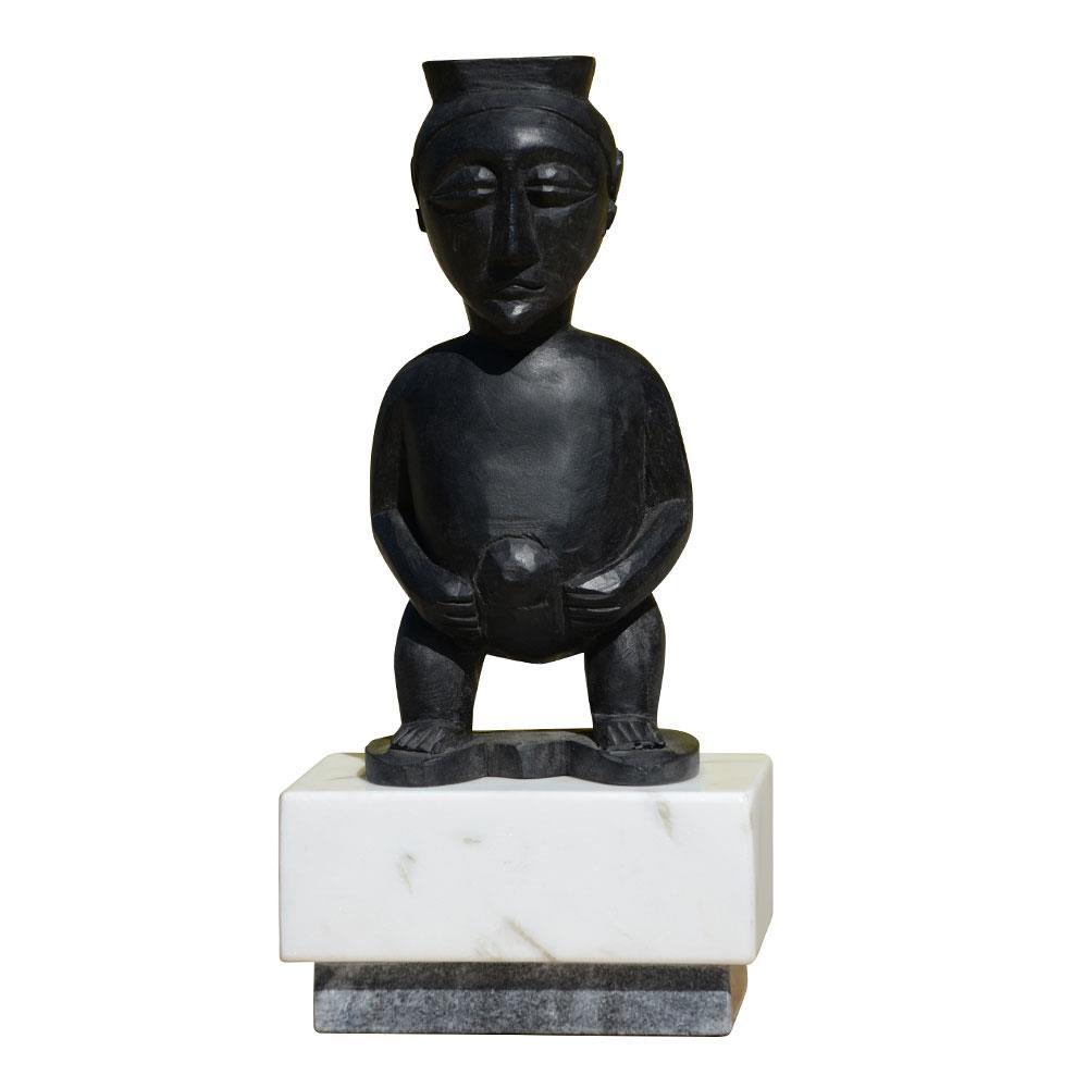 Hand Carved Mango Wood male figure with Black finish on Solid white and charcoal Marble Base