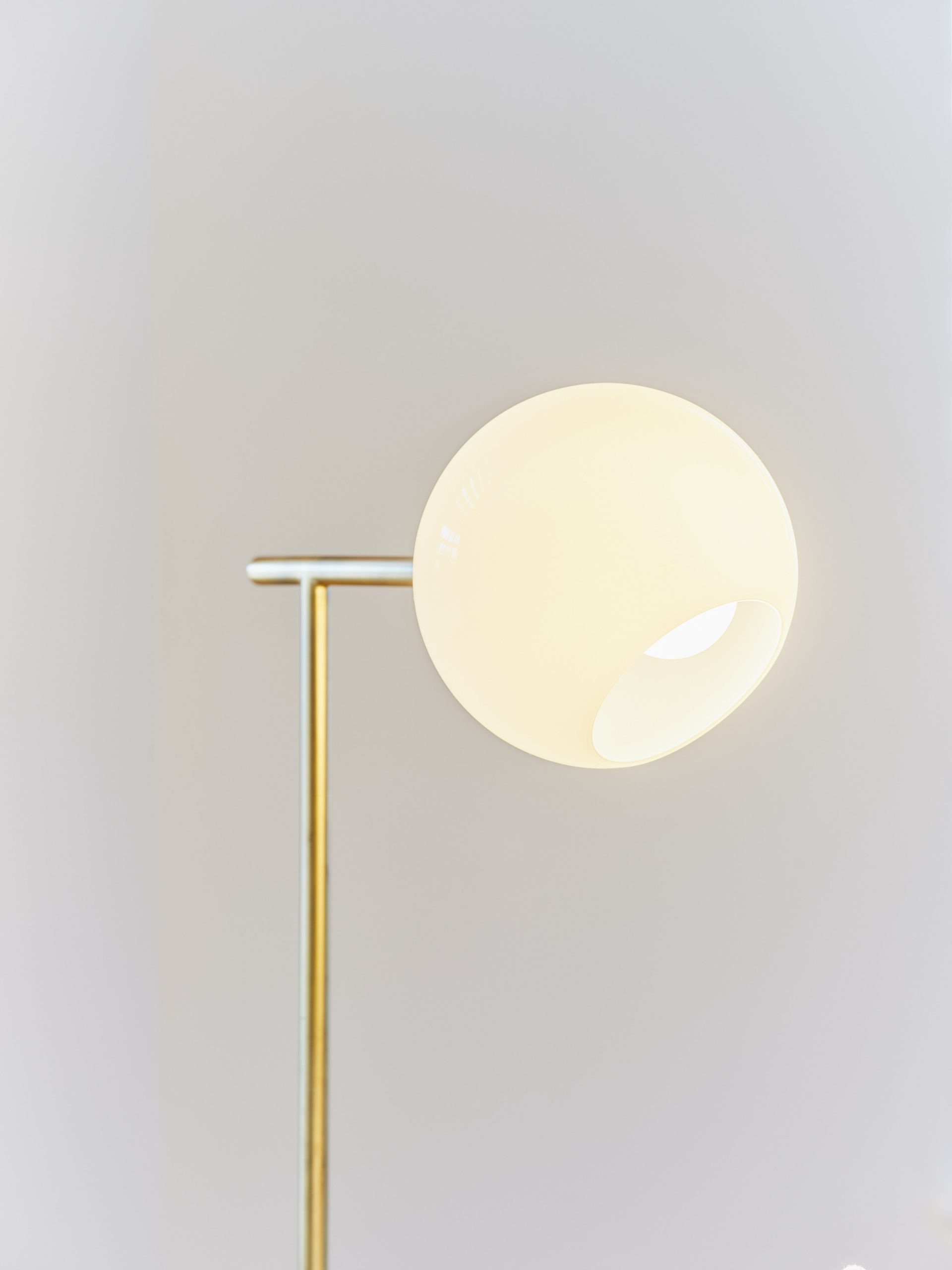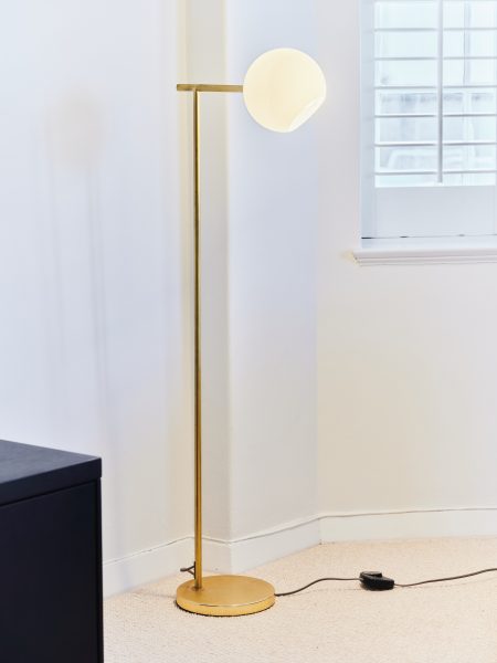 Staggered Staggered Floor Lamp 36cm W x 23cm D x 127cm H Brass frame with milk glass shade. Categories: Floor Lamp, Lighting Description Description Related products Perf Read more Quick View Sapphire Read more Quick View Chapeaux Read more Quick View