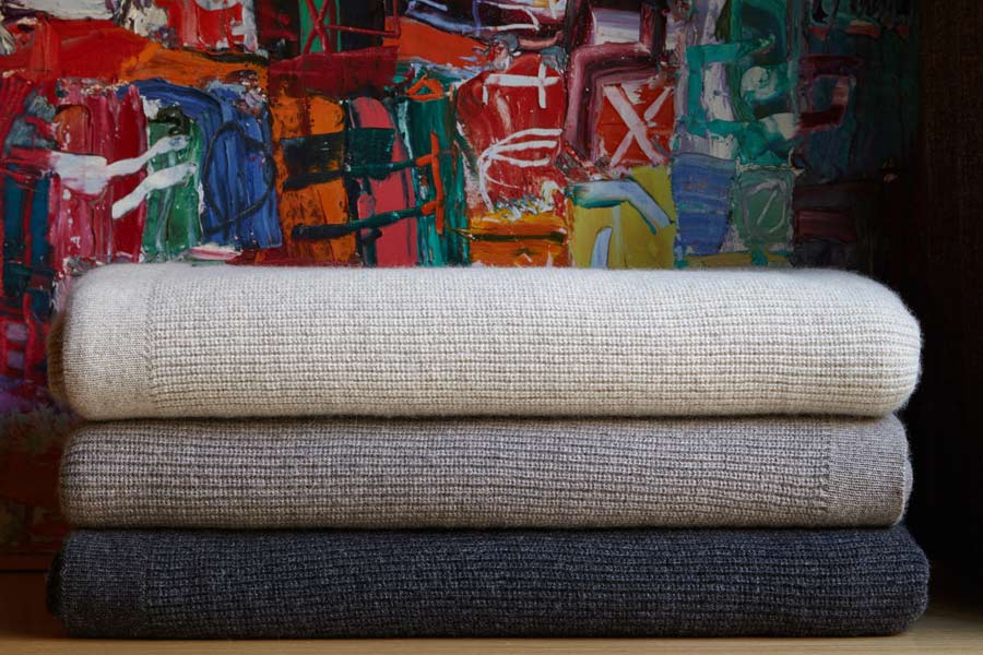 Experience the softness and warmth of our luxurious angora and fine merino blankets and throws. Made of mélange yarn spun from a perfect balance of fine Australian merino wool and rare quality angora. Tumble-dried, pre-shrunk and hand finished by expert seamstresses. Machine wash and tumble dry to maintain superior softness.