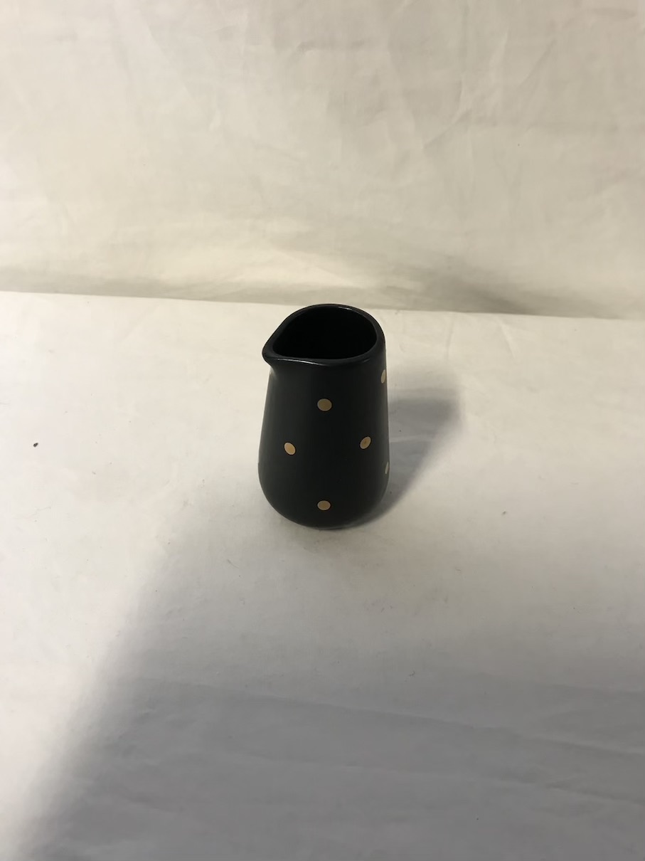 Tea Accessory 1016 Tea Accessory 1016 Dimensions: 7.5cmH x 4cmW Black and gold polka dot milk pourer. Categories: Accessories, Homeware Related products Bowl 1098 Read more Quick View Basket 1025 Read more Quick View Exotic Cushion – Brown Read more Quick View