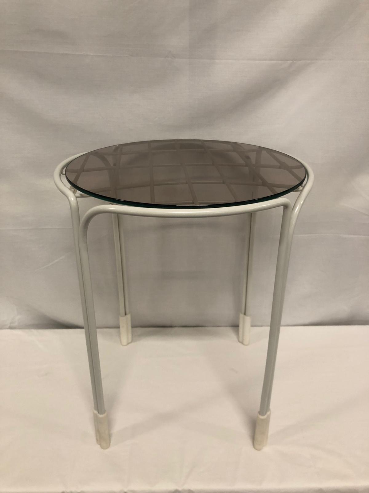 Tidal Tidal Outdoor Side Table 38cm Diam x 45cm H White metal framed with smoke glass round top Categories: Outdoor, Outdoor Side Table Description Description Related products Roda Stone Read more Quick View Jak Read more Quick View Desiree Read more Quick View