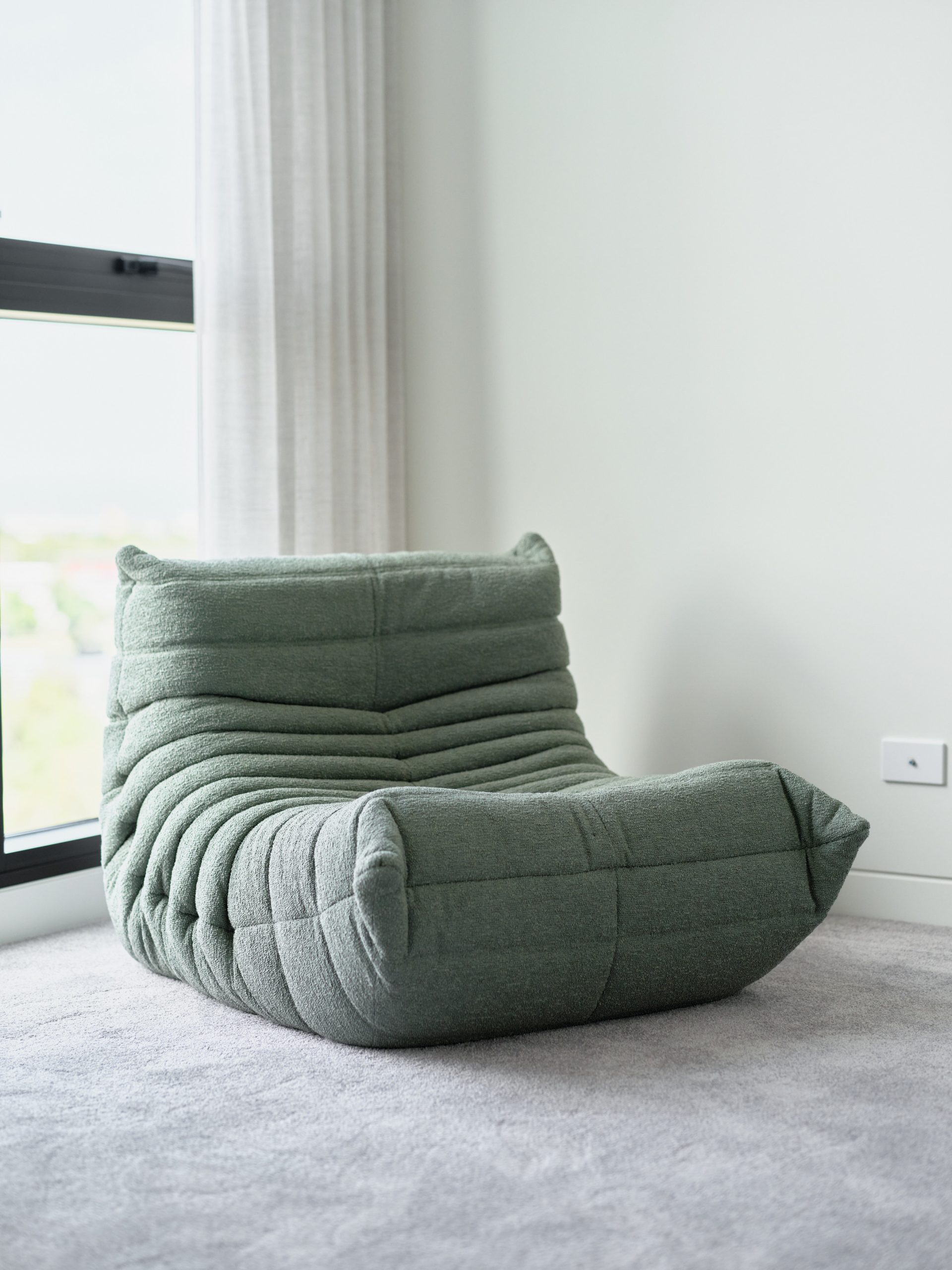 Togo Togo by Ligne Roset 102cm W x 87cm D x 70cm H Single Fireside chair in green boucle fabric Parade/Fr Amande Categories: Living, Occasional Chair Description Description Related products Yee Read more Quick View Bold Read more Quick View Tiered Read more Quick View