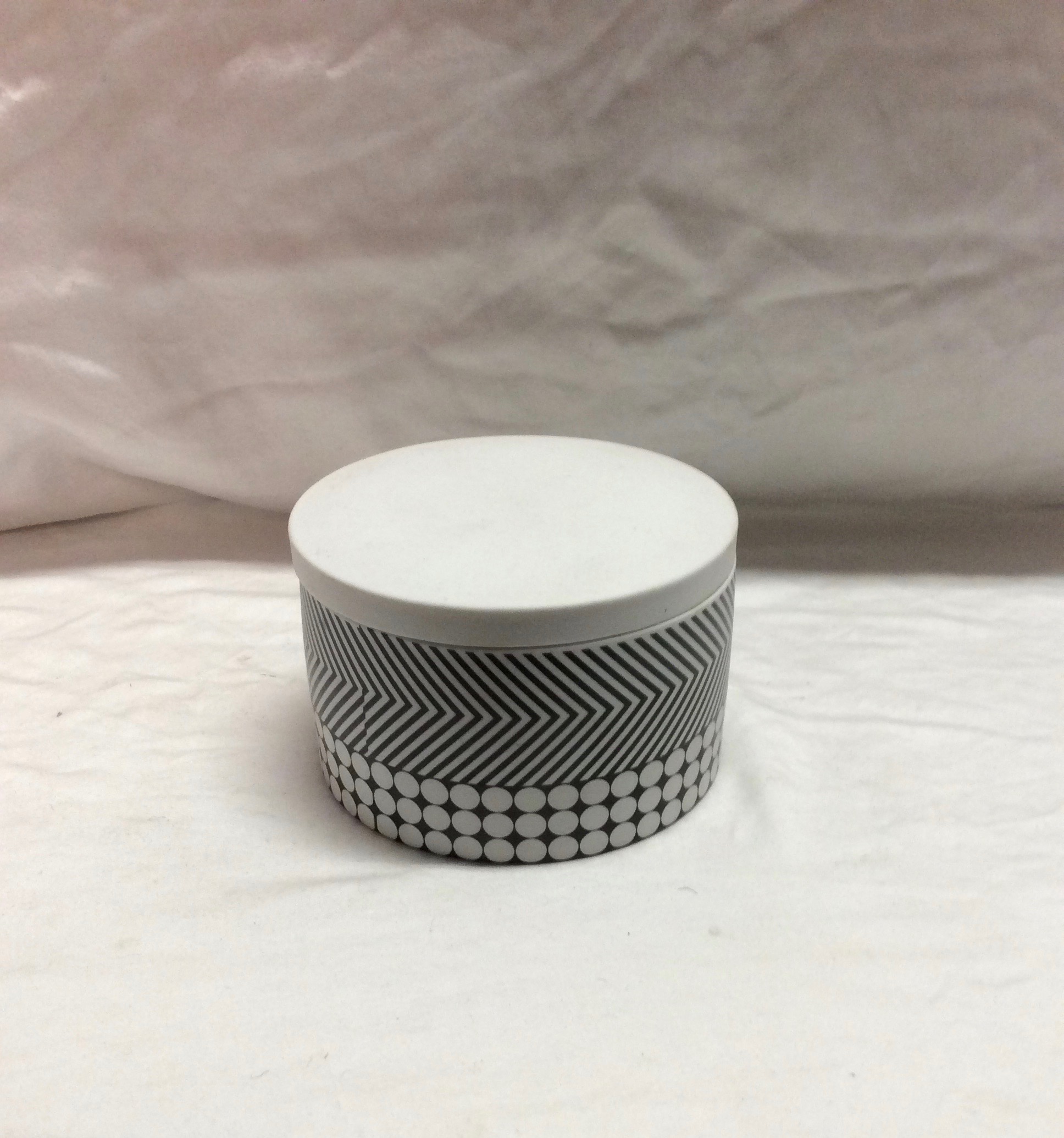 Trinket Box 1029 13cm Diam x 8.5cm H White ceramic container with black/White all pattern Categories: Accessories, Decorative Description Description Related products Bell Read more Quick View Brick Cushions – Green and Orange Read more Quick View Mia Read more Quick View