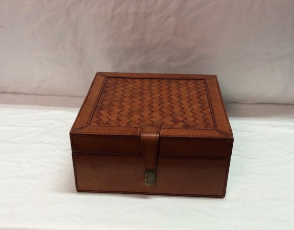 Trinket Box 1036 20.5cm W x 10cm H Tan leather box with woven lid detail and brass clasp Categories: Accessories, Decorative Description Description Related products Kenzo Read more Quick View Brick Cushions – Green and Orange Read more Quick View Exotic Cushion – Brown Read more Quick View