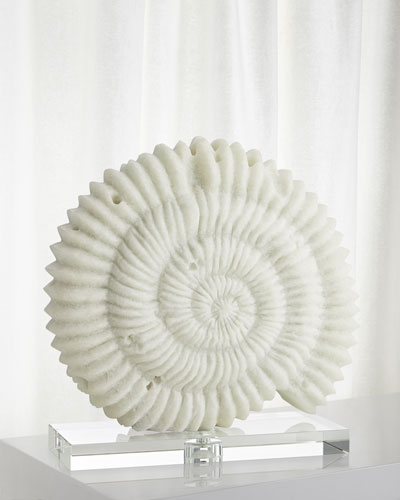 White faux Marble Shell-shaped Sculpture on Clear Crystal Plinth