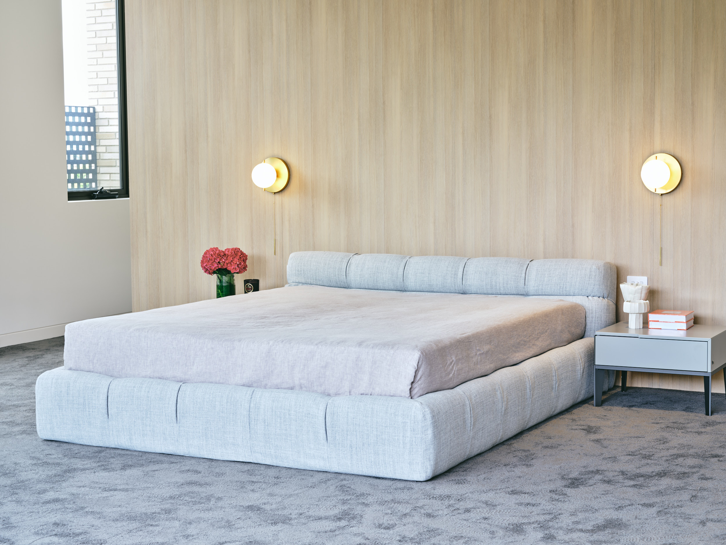 Tufty Tufty King Bed by B&B Italia 200cm W x 247cm D x 77cm H Pale grey upholstered bed frame Categories: Bed, Bedroom Description Description Related products PianPian Read more Quick View Olive Read more Quick View 7070 Read more Quick View