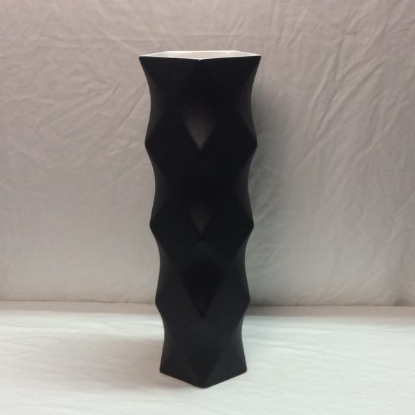 Ceramic tall vase with matte black finish and white interior with diamond pattern all over – Joker