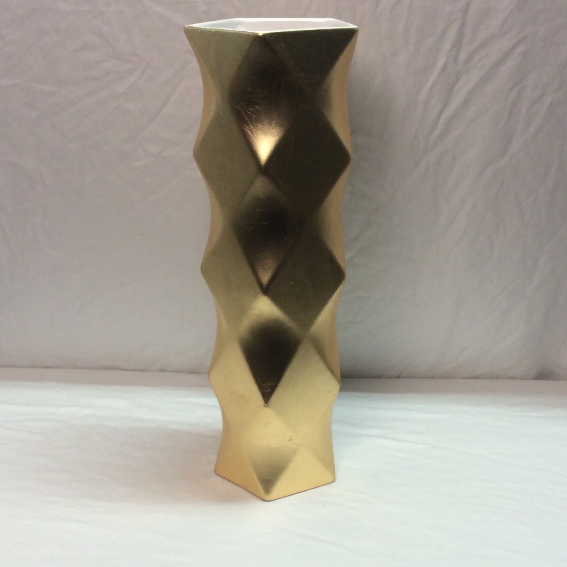 Ceramic tall vase with gold foil finish and white interior with diamond pattern all over – Joker