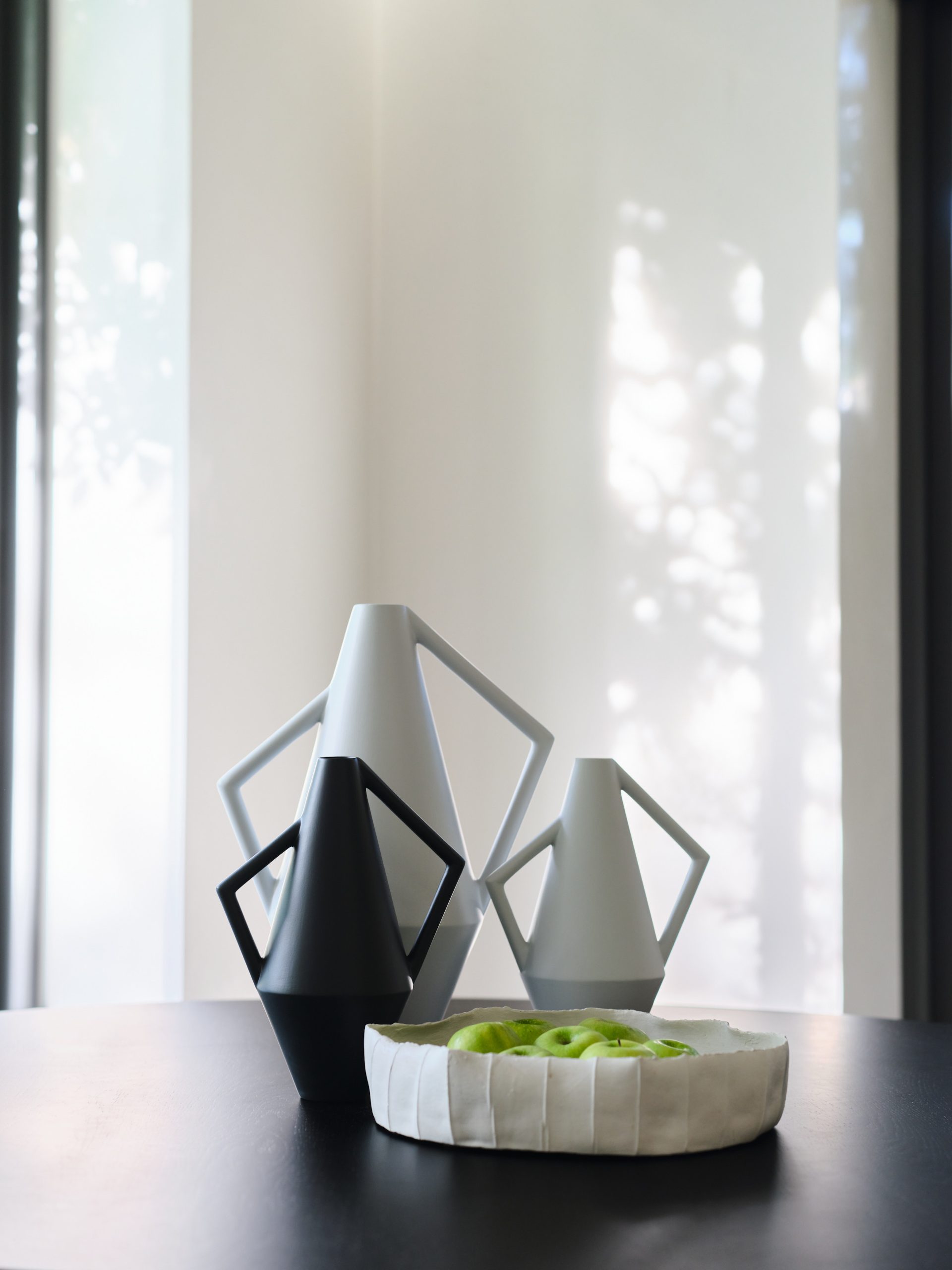 Ceramic vases with asymmetric triangle handles