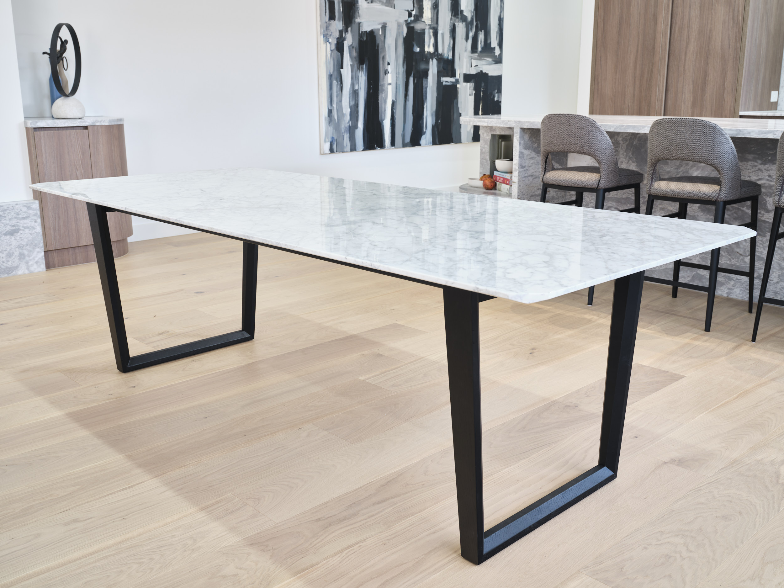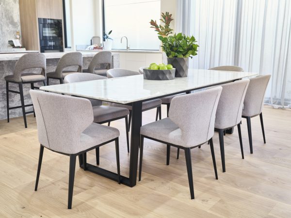 Verge Verge Dining Table 240cm W x 100cm D x 74cm H Carrera Marble on black solid wood legs Categories: Dining, Dining Table Description Description Related products August Read more Quick View Eleganza Read more Quick View Container Read more Quick View